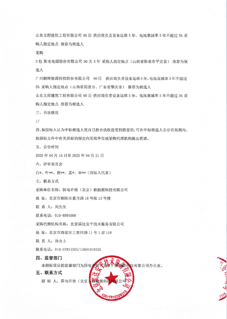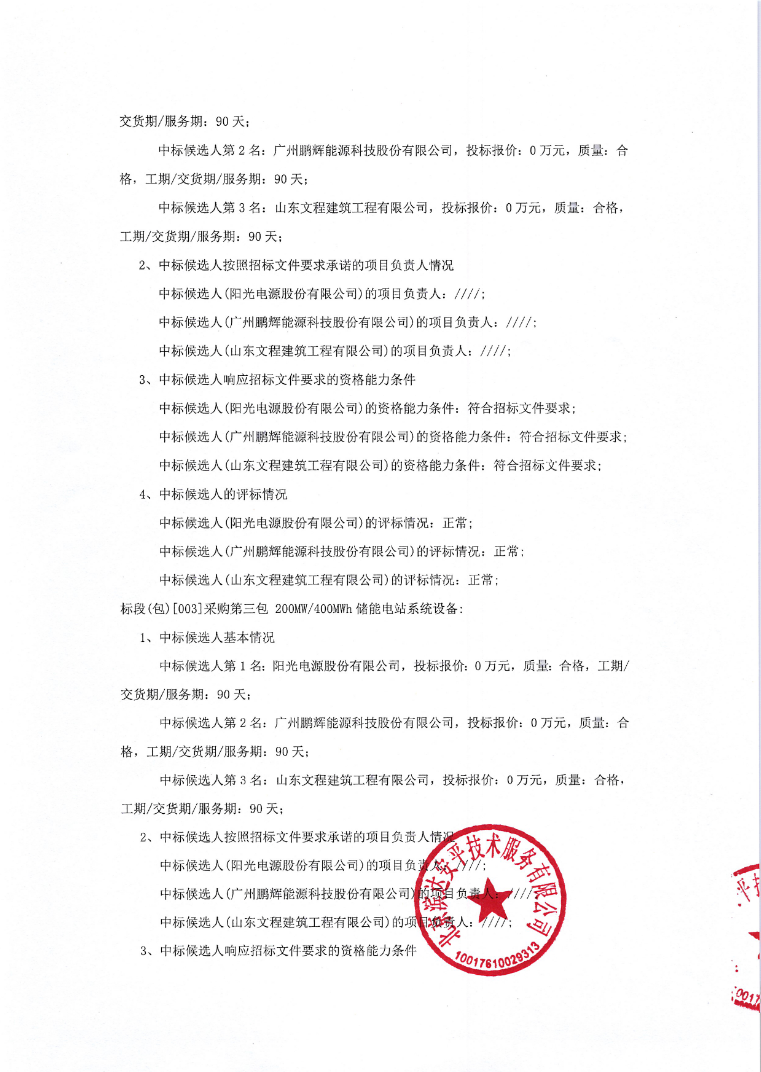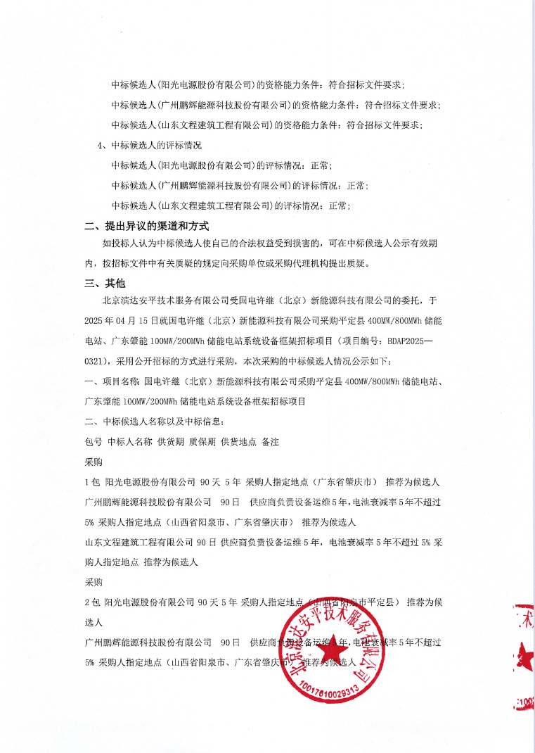 第二中标候选人均为:广州鹏辉能源科技股份有限公司;